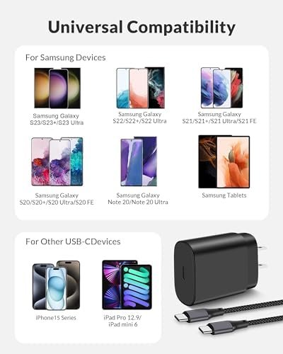 [Widely Compatibility] Power Delivery 3.0 PD PPS Type C fast charger kit compatible with Samsung Galaxy S23/S23+/S23 Ultra/S22/S22+/S22 Ultra/S21/S21+/S21 Ultra/S20/S20+/S20 Ultra/S10 5G/Z Fold 3/Z Flip 3/Note 20/Note 20 Ultra/Note 10, iPad Pro 11/12.9 inch, iPad Mini 6, iPad Air 5/4, Android phone and more.