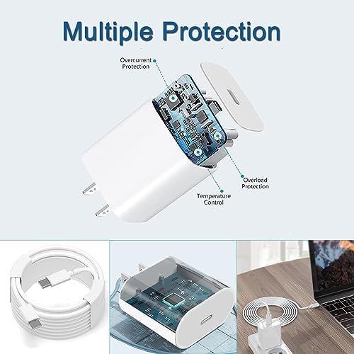 【Compatible with iPhone 15 Fast Charger 】 USB C Wall charger provides 20W power output and charges your phone up to 50% more in just 30 minutes, which is 3 times faster than the original charger and saves you more than 1 hour.