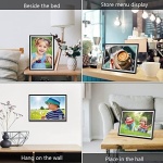 【SLIDE SHOW & AUTO-ROTATE】 The digital picture frame allows you to set up different transition speed, transition effects and repeat mode. The digital photo frame can automatically rotate photos to adjust the direction, Come with a detachable stand and wall mounted, you can hang it on the wall or place on a table for best viewing experience.