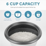 Perfectly prepares 2 to 6 cups of any variety of cooked rice