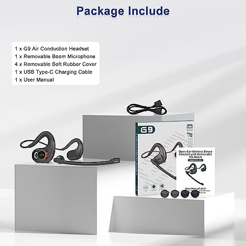 📞【Detachable Noise Cancelling Microphone】The Open ear headphones is equipped with DSP noise reduction technology to ensure clear calls and a great music experience. The detachable boom is magnetically designed and it can rotate 360° to maximize your voice pickup to improve call quality! In addition, Bluetooth headset with microphone has Φ15.4mm driver speaker, it is the bigger than others and the sound will be more clarity and louder.