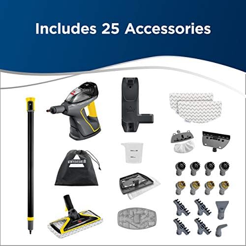 INCLUDES 29 ACCESSORIES to tacking indoor and outdoor tough messes that can be used on both the extended reach steam cleaner and the handheld steam cleaner.