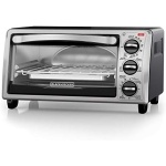 Large enough for a 9” pizza or four slices of bread, the BLACK+DECKER 4-Slice Stainless Steel Toaster Oven with Broiler Pan complements any kitchen countertop. This compact, versatile toaster oven bakes, broils, toasts, and keeps food warm, at up to 450°F. It comes with a baking and broiler pan that fits perfectly into the small toaster oven interior. Plus, our exclusive EvenToast Technology optimizes heat distribution to toast bread evenly. When it’s time to eat, trust the #1 brand in toaster ovens*—BLACK+DECKER. Large viewing window keep an eye on food during cooking. The durable glass window gives you a clear view of food throughout the cooking process. Bake/broiler pan don’t worry about finding pans to fit in the oven. The included baking/broiling pan fits perfectly, making it easy to insert and remove food. Toasting rack also included.