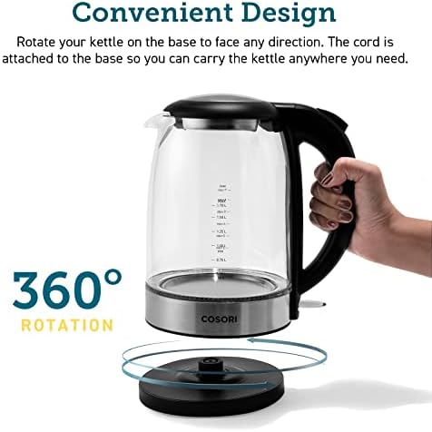 SUPERIOR MATERIALS – Crafted with high-quality borosilicate glass and 304 stainless steel, the electric tea kettle ensures the safety and purity of your water.