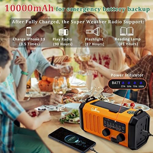 Emergency Hand Crank Weather Radio with 10000mAh Battery Backup,Type-C Charging