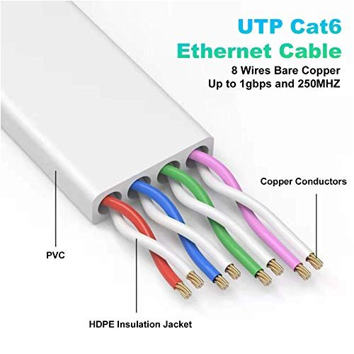 【PREMIUM MATERIAL】Our 50 feet ethernet cable is also made of 8 copper wires. The performance of UTP (Unshielded Twisted Pair) can be as high as 250 MHz and is very flexible. It can be tightly wound in a corner without affecting the speed. Crosstalk, noise and interference rarely occur