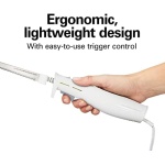 ERGONOMIC, LIGHTWEIGHT DESIGN: The electric knife is lightweight and has an ergonomic, hand-contoured grip that’s designed to fit comfortably in either hand. The knife is easy to operate with a simple trigger control.