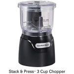Hamilton Beach food choppers speed food prep by handling the chopping, mincing and mixing for you. Don’t let the compact, lightweight design fool you. These popular food choppers are powerful enough to take on onions, herbs, nuts, garlic and more. You can even use these food choppers to puree sauces and baby food. The Hamilton Beach Small 3-Cup Food Processor & Vegetable Choppers’ Stainless Steel chopping blades provide powerful, reliable results. Plus, they’re easy to use and clean the bowl, lid and chopping blade are dishwasher safe, and the hideaway cord cuts counter top clutter. Do not let cord hang over edge of table or counter, or touch hot surface including stove.