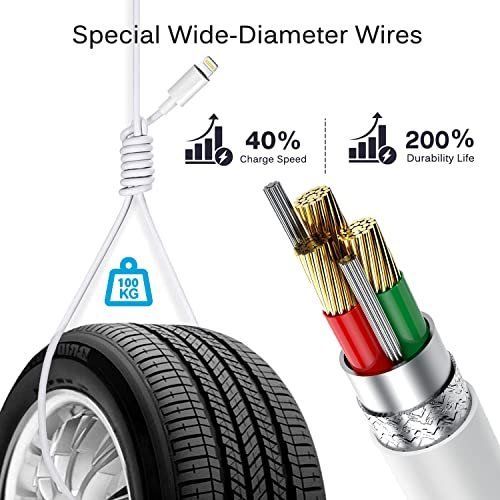 【MFI Certified & Fast Charging】Each iphone charging cable Built with apple’s original C89 terminal and smart chip, supproting all lightning device. The special wide-diameter wires and reduced cord resistance maximize charging speed, charging speed greatly increased by 33%.