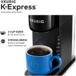 Welcome to Keurig quality, at our most welcoming price. Enjoy rich, full-flavored taste every time you brew with the Keurig K-Express Single Serve Coffee Maker. Whether you’re looking to start your morning strong or need the perfect afternoon pick-me-up, use the STRONG button for a bolder, more intense coffee taste. And speaking of bold – the sleek, modern design of the K-Express coffee maker makes a big impression in any kitchen. Enjoy an 8, 10, or 12oz. cup of your favorite beverages – all fast and freshly brewed in minutes at the touch of a button. The 42oz. removable reservoir lets you brew up to 4 cups* before refilling, and back-to-back brewing means you don’t have to wait for your brewer to reheat before brewing a second cup. Plus, you can choose your favorites from the hundreds of coffee brands and flavors available in K-Cup pods, including tea or hot cocoa. You can even use a My K-Cup Reusable Coffee Filter (sold separately) with your own favorite ground coffee. And all of this comes at a price that helps you put America’s #1 single serve coffee maker brand on your counter. *8 oz. cup size.
