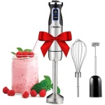3 Easy Attachments – Stick blender with: (1) Stainless Steel Blending Shaft to blend shakes, soup, baby food; (2) Frother for foaming all milk types; (3) Whisk for whipping cream or batter.
