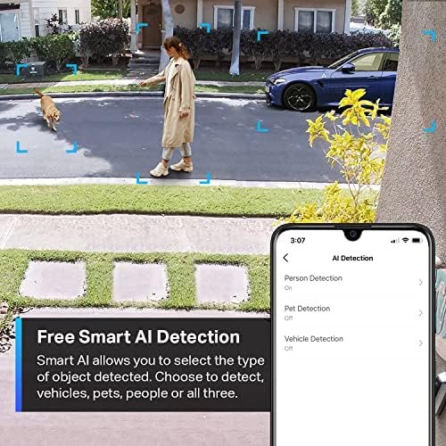 【Free AI Detection and Activity Zones】Get instant push notifications when motion is detected, be it a person, a pet, a vehicle, or movement in one of your custom Activity Zones. Your personal sentry to monitor your driveway and beyond. For optimal results, remove any obstructions such as windows or screens in front of the camera. Glare or obstacles will affect the camera’s ability to detect motion.