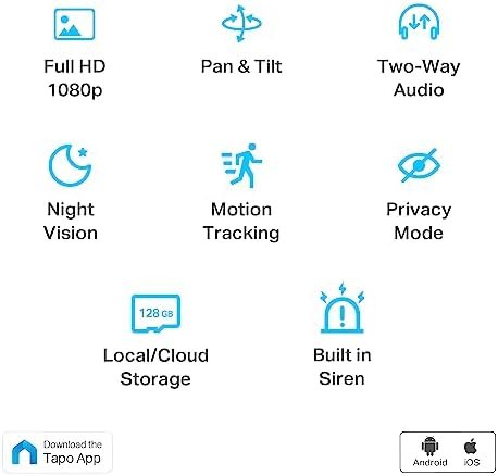 【Secure Local or Cloud Storage】Save footage continuously on up to a 128 GB microSD card (not included) or subscribe to Tapo Care for cloud storage which saves 30-day video history and provides additional benefits such as motion tracking and more.